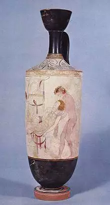 Mary Lefkowitz (2003)[9] discusses the relevance of divine action in the Iliad, attempting to answer the question of whether or not divine intervention is a discrete occurrence (for its own sake), or if such godly behaviors are mere human character metaphors. The intellectual interest of Classic-era authors, such as Thucydides and Plato, was limited to their utility as "a way of talking about human life rather than a description or a truth", because, if the gods remain religious figures, rather than human metaphors, their "existence"—without the foundation of either dogma or a bible of faiths—then allowed Greek culture the intellectual breadth and freedom to conjure gods fitting any religious function they required as a people.[9][10] The religion had no founder and was not the creation of an inspired teacher which were popular origins of existing religions in the world.[11] The individuals were free to believe what they wanted, as the Greek religion was created out of a consensus of the people. These beliefs coincide to the thoughts about the gods in polytheistic Greek religion. Adkins and Pollard (2020/1998), agree with this by saying, “the early Greeks personalized every aspect of their world, natural and cultural, and their experiences in it. The earth, the sea, the mountains, the rivers, custom-law (themis), and one’s share in society and its goods were all seen in personal as well as naturalistic terms.”[12] As a result of this thinking, each god or goddess in Polytheistic Greek religion is attributed to an aspect of the human world. For example, Poseidon is the god of the sea, Aphrodite is the goddess of beauty, Ares is the god of war, and so on and so forth for many other gods. This is how Greek culture was defined as many Athenians felt the presence of their gods through divine intervention in significant events in their lives. Oftentimes they found these events to be mysterious and inexplicable.[7]