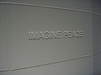 The Imagine Peace Tower (Icelandic: Friðarsúlan, meaning "the peace column") is a memorial to John Lennon from his widow, Yoko Ono, located on Viðey Island in Kollafjörður Bay near Reykjavík, Iceland. It consists of a tall tower of light, projected from a white stone monument that has the words "Imagine Peace" carved into it in 24 languages. These words, and the name of the tower, are a reference to Lennon's campaign for peace, and his song "Imagine".