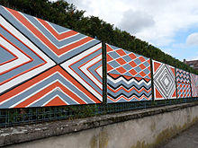 Imigongo (Kinyarwanda: [i.mí.ɡôː.ŋɡo]) is an art form popular in Rwanda traditionally made by women using cow dung. Often in the colors black, white and red, popular themes include spiral and geometric designs that are painted on walls, pottery, and canvas.