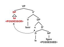 - ^ a b c Nakamoto, Takeshi (2010). "Inalienable Possession Constructions in French". Lingua. 120 (1): 74–102. doi:10.1016/j.lingua.2009.05.003.