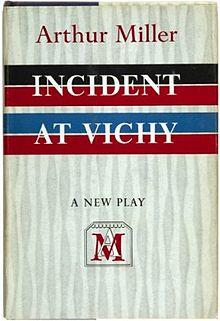 Incident at Vichy is a one-act play written in 1964 by American dramatist Arthur Miller. [1] It depicts a group of men who have been detained in Vichy France in 1942; they are being held for their "racial" inspection by German military officers and Vichy French police. The play focuses on the subjects of human nature, guilt, fear, and complicity and examines how the Nazis were able to perpetrate the Holocaust with so little resistance. Miller said of Incident at Vichy, "What is dark if not unknown is the relationship between those who side with justice and their implication in the evil they oppose. [...] The good and the evil are not compartments but two elements of a transaction." [2]