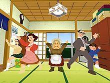 The second family member to be focused on is mother Etsuko, who is out buying ingredients for Hatsu's birthday dinner. She soon visits the bank, where she finds it to be in the process of being robbed, but manages to sneak out without being noticed until the last minute. The bank robbers choose to use Etsuko to investigate the money vault, and she is ordered to take a golden piggy-bank, which she finds booby-trapped and thus must replace its weight using the ingredients she has bought thus far. After doing so, she gives it to her captors; who force her to open it by inputting musical commands which two of the bank robbers demonstrate. Once done, they unexpectedly find it open up and transform into a deadly machine, firing off lasers. Etsuko manages to remove its head however using one of her ingredients, and it explodes, throwing her and the bank robbers to the back of the bank and onto a long area of snow. The bank robbers try to shoot her down (possibly because she's a key witness to the crime), but she manages to speed off ahead, and accidentally lands into a gorge. Sometime later, Etsuko awakens in a secret military air jet hangar, where she decides to pilot a jet to get back home. After take off, she discovers that a giant bear (which has a large sign of Ririka on) is roaming and destroying the city; and being the only fighter jet remaining in the sky, she is forced to shoot it down, and succeeds. After its defeat, she returns to Hatsu's house with the ingredients, declaring "Sukiyaki" for dinner.