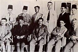 The Independence Party of Palestine (Hizb al-Istiqlal) was an Arab nationalist political party established on 13 August 1932[2] in Palestine during the British Mandate. The party was founded by Muhammad Izzat Darwaza, and the other founders of the party were Fahmi al-Abboushi, Mu'in al-Madi, Akram Zu'aytir, ‘Ajaj Nuwayhid, Rashid al-Hajj Ibrahim, Subhi al-Khadra, and Salim Salamah.[3][4] The party did not achieve a large membership but Awni Abd al-Hadi, through his role as private secretary to Amir Feisal in Damascus between 1918-1920, had good relations with many senior leaders across the Arab World.[5]