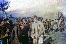 Although by the late 20th century headhunting and cannibalism had been practically eradicated, in the past they were practised in many parts of the country as part of rituals related to warfare and taking in enemy spirits or powers.[27][28] In 1901, on Goaribari Island in the Gulf of Papua, missionary Harry Dauncey found 10,000 skulls in the island's long houses, a demonstration of past practices.[29] According to Marianna Torgovnick, writing in 1991, "The most fully documented instances of cannibalism as a social institution come from New Guinea, where head-hunting and ritual cannibalism survived, in certain isolated areas, into the Fifties, Sixties, and Seventies, and still leave traces within certain social groups."[30]