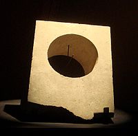 Invented by Padmanābha, a nocturnal polar rotation instrument consisted of a rectangular board with a slit and a set of pointers with concentric graduated circles.[33] Time and other astronomical quantities could be calculated by adjusting the slit to the directions of α and β Ursa Minor.[33] Ōhashi (2008) further explains that: "Its backside was made as a quadrant with a plumb and an index arm. Thirty parallel lines were drawn inside the quadrant, and trigonometrical calculations were done graphically. After determining the sun's altitude with the help of the plumb, time was calculated graphically with the help of the index arm."[33]