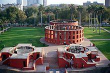 The Mahārāja of Jaipur, Sawai Jai Singh (1688–1743 CE), constructed five astronomical observatories at the beginning of the eighteenth century. The observatory in Mathura is not extant, but those in Delhi, Jaipur, Ujjain, and Banaras are. There are several huge instruments based on Hindu and Islamic astronomy. For example, the samrāt.-yantra (emperor instrument) is a huge sundial which consists of a triangular gnomon wall and a pair of quadrants toward the east and west of the gnomon wall. Time has been graduated on the quadrants.[33]