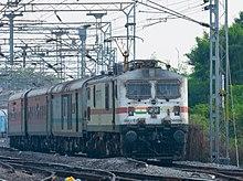 With a maximum speed rating of 140 km/h (87 mph) the WAP-7 has the highest acceleration figures while hauling mail/express trains. The WAP-7 can also haul loads of 24-26 passenger coaches (1,430–1,550 t or 1,410–1,530 long tons or 1,580–1,710 short tons at 130 km/h or 81 mph). It is the most successful passenger locomotive on the Indian Railways roster after the WAP 4. It was initially used to haul premium train services like the Rajdhani Express, Shatabdi Express and the Duronto Express.[3] As more locomotives were rolled out, the WAP 7 became the official link of several state trains like the Telangana Express, Kerala Express, Paschim Express, Purushottam express, Vikramshila express, Poorva express, Karnataka express and among others. The locomotives have been used as a regular link for many of the Garib Rath express and many Humsafar express services and eventually extended to a significant number of AC Express and Mail/Superfast Express services like Jaipur Superfast Express, Thiruvananthapuram Mail, Mangalore Mail, Bangalore Mail, Sewagram express, Panchvati Express, Vaigai Express and so on. It is soon to be the most commonly used passenger locomotive. Upgrades are underway to increase power output and maximum speed. The First High Speed version WAP-7 HS loco (loco no 30750) was launched on 28 February 2019 capable of attaining 180 km/h with overall reduction in weight by 14 tons.