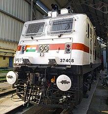 The WAP-7 is one of the most successful locomotives of Indian Railways serving passenger trains for over 20 years. It is a passenger variant of the WAG 9 freight locomotive with a modified gear ratio to pull lighter loads at higher speeds. It is the most powerful passenger locomotive in the Indian Railways fleet, capable of hauling 24 coach trains at speeds 110–140 km/h (68–87 mph).