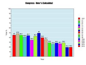 - ^ "Congress Vote Share Dips Below 20 Per Cent for First Time". NDTV India. 17 May 2014. Retrieved 22 June 2014.
