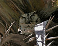 The Indian scops owl is nocturnal. Through its natural camouflage, it is very difficult to see in daytime, but may sometimes be located by the small birds that mob it while it is roosting in a tree. It feeds mainly on insects. The call is a soft single note ("whuk?"). It nests in tree holes, laying 3–5 eggs.