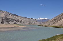 This natural physical landmass in South Asia is the dry-land portion of the Indian Plate, which has been relatively isolated from the rest of Eurasia.[43] The Himalayas (from Brahmaputra River in the east to Indus River in the west), Karakoram (from Indus River in the east to Yarkand River in the west) and the Hindu Kush mountains (from Yarkand River westwards) form its northern boundary.[41][44] In the west it is bounded by parts of the mountain ranges of Hindu Kush, Spīn Ghar (Safed Koh), Sulaiman Mountains, Kirthar Mountains, Brahui range, and Pab range among others,[41] with the Western Fold Belt along the border (between the Sulaiman Range and the Chaman Fault) is the western boundary of the Indian Plate,[45] where, along the Eastern Hindu Kush, lies the Afghanistan–Pakistan border.[46] In the east it is bounded by Patkai, Naga, Lushai and Chin hills.[41] The Indian ocean, Bay of Bengal and Arabian Sea forms the boundary of the Indian subcontinent in the south, south-east and south-west.[41]