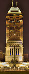 After completion of the Soldiers' and Sailors' Monument, an ordinance was passed in 1905 restricting building heights on the traffic circle to 86 ft (26 m) to protect views of the 284 ft (87 m) monument.[92] The ordinance was revised in 1922, permitting buildings to rise to 108 ft (33 m), with an additional 42 ft (13 m) allowable with a series of setbacks.[92] A citywide height restriction ordinance was instituted in 1912, barring structures over 200 ft (61 m).[93] Completed in 1962, the City-County Building was the first skyscraper in the city, surpassing the Soldiers' and Sailors' Monument in height by nearly 100 ft (30 m).[94] A building boom, lasting from 1982 to 1990, saw the construction of six of the city's ten tallest buildings.[95][96] The tallest is Salesforce Tower, completed in 1990 at 811 ft (247 m).[97] Indiana limestone is the signature building material in Indianapolis, widely included in the city's many monuments, churches, academic, government, and civic buildings.[95]