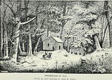 The availability of new federal lands for purchase in central Indiana attracted settlers, many of them descendants of families from northwestern Europe. Although many of these first European and American settlers were Protestants, a large proportion of the early Irish and German immigrants were Catholics. Few African Americans lived in central Indiana before 1840.[35] The first European Americans to permanently settle in the area that became Indianapolis were either the McCormick or Pogue families. The McCormicks are generally considered to be the first permanent settlers; however, some historians believe George Pogue and family may have arrived first, on March 2, 1819, and settled in a log cabin along the creek that was later called Pogue's Run. Other historians have argued as early as 1822 that John Wesley McCormick, his family, and employees became the area's first European American settlers, settling near the White River in February 1820.[36]