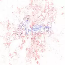 The post–World War II economic expansion and subsequent suburbanization had a profound impact on the physical development of the city's neighborhoods. From 1950 to 1970, 97,000 housing units were built in Marion County.[101] Most of this new construction occurred outside Center Township, expediting out-migration from the city's urban neighborhoods to suburban areas, such as Castleton, Eagledale, and Nora. Between 1950 and 1990, over 155,000 residents left Center Township, resulting in urban blight and disinvestment.[101] Since the 2000s, Downtown Indianapolis and surrounding neighborhoods have seen increased reinvestment attributed to nationwide demographic trends, driven by empty nesters and millennials.[102] By 2020, Downtown is projected to have 30,000 residential units, compared to 18,300 in 2010.[103]