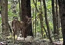 Indianapolis is within the Tipton Till Plain, a flat to gently sloping terrain underlain by glacial deposits known as till.[83] The lowest point in the city is about 650 feet (198 m) above mean sea level, with the highest natural elevation at about 900 feet (274 m) above sea level.[83] Few hills or short ridges, known as kames, rise about 100 feet (30 m) to 130 feet (40 m) above the surrounding terrain.[83] The city lies just north of the Indiana Uplands, a region characterized by rolling hills and high limestone content. The city is also within the EPA's Eastern Corn Belt Plains ecoregion, an area of the U.S. known for its fertile agricultural land.[84]