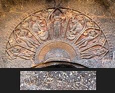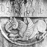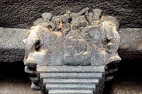 The Greeks in India even seem to have played an active role in the propagation of Buddhism, as some of the emissaries of Ashoka such as Dharmaraksita,[44] or the teacher Mahadharmaraksita,[45] are described in Pali sources as leading Greek ("Yona", i.e., Ionian) Buddhist monks, active in Buddhist proselytism (the Mahavamsa, XII).[46] It is also thought that Greeks contributed to the sculptural work of the Pillars of Ashoka,[47] and more generally to the blossoming of Mauryan art.[48] Some Greeks (Yavanas) may have played an administrative role in the territories ruled by Ashoka: the Junagadh rock inscription of Rudradaman records that during the rule of Ashoka, a Yavana King/ Governor named Tushaspha was in charge in the area of Girnar, Gujarat, mentioning his role in the construction of a water reservoir.[49][50]