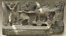 The details of the marriage agreement are not known,[28] but since the extensive sources available on Seleucus never mention an Indian princess, it is thought that the marital alliance went the other way, with Chandragupta himself or his son Bindusara marrying a Seleucid princess, in accordance with contemporary Greek practices to form dynastic alliances. An Indian Puranic source, the Pratisarga Parva of the Bhavishya Purana, described the marriage of Chandragupta with a Greek ("Yavana") princess, daughter of Seleucus,[29] before accurately detailing early Mauryan genealogy: