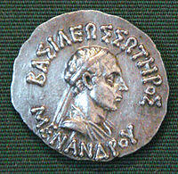 - ^ "King Menander, who built the penultimate layer of the Butkara stupa in the first century BCE, was an Indo-Greek." in Empires of the Indus: The Story of a River, Alice Albinia – 2012