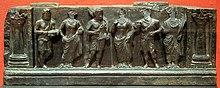 - ^ "Others, dating the work to the first two centuries A.D., after the waning of Greek autonomy on the Northwest, connect it instead with the Roman Imperial trade, which was just then getting a foothold at sites like Barbaricum (modern Karachi) at the Indus-mouth. It has been proposed that one of the embassies from Indian kings to Roman emperors may have brought back a master sculptorto oversee work in the emerging Mahayana Buddhist sensibility (in which the Buddha came to be seen as a kind of deity), and that "bands of foreign workmen from the eastern centres of the Roman Empire" were brought to India" (Mc Evilley "The shape of ancient thought", quoting Benjamin Rowland "The art and architecture of India" p. 121 and A. C. Soper "The Roman Style in Gandhara" American Journal of Archaeology 55 (1951) pp. 301–319)