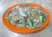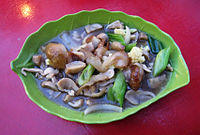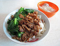 - Kwetiau ayam, boiled flat noodle (shahe fen) with diced chicken.