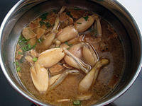 - Haisom cah, stir fried trepang with garlic, onion, hioko mushroom, scallion, minced chicken, soy sauce and oyster sauce.