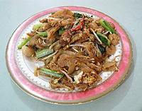 - Kwetiau goreng, fried flat noodle similar to char kuay teow.