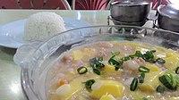 - Mun tahu, silken tofu with shrimp and minced chicken braised in thick white sauce.