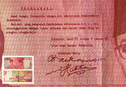This proclamation is printed on the front of the Rp.100,000 Indonesian banknote of the year 1999 and 2004 series.