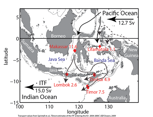 - ^ Sprintall, J., S.E. Wijffels, R. Molcard, and I. Jaya, Direct estimates of the Indonesian Throughflow entering the Indian Ocean: 2004-2006, Journal of Geophysical Research-Oceans, 114, 19, 2009.