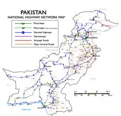 The Indus Highway (Urdu: شاہراہ سندھ), also known as National Highway 55 (N-55) (Urdu: قومی شاہراہ 55), is a 1264 km long two to four-lane national highway that runs along the Indus River in Pakistan connecting the port city of Karachi with the northwestern city of Peshawar via Dera Ghazi Khan. It is part of Pakistan's National Highways network and is maintained and operated by Pakistan's National Highway Authority. The Indus Highway passes through the Kohat Tunnel.