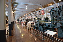 In 1963, British journalist Kenneth Hudson published the first IA text, titled Industrial archaeology: an introduction.[17] Four years later in April 1967, Hudson spoke at a seminar at the Smithsonian Institution in Washington, D.C., at what is considered the birth of the IA-movement in the United States. The seminar, which was attended by an audience of historic preservationists, museum professionals and others, focused on what was being done to promote the study of industrial archaeology in Great Britain and in Europe, and what needed to be done in the United States.[18] By this time, a number of select historic industrial sites had been recorded by the Historic American Buildings Survey (HABS), which until then had mainly concentrated its efforts on architecturally significant sites. In 1967, the notable New England Textile Mills Survey (NETMS) was performed under the HABS umbrella, led by Robert M. Vogel, curator of the Division of Mechanical and Civil at the Smithsonian Museum of History and Technology. The NETMS was the first large-scale, industrial recording project by HABS.[19] It was followed by the New England Textile Mill Survey II in 1968.[20] The full reports from the 1967 and 1968 textile mill surveys are now available for public viewing on the Library of Congress website, including the Amoskeag Millyard in Manchester, New Hampshire, which was drastically altered soon after the survey was completed.[21]
