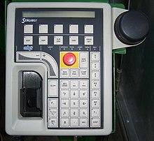 Teach pendant: Robot positions can be taught via a teach pendant. This is a handheld control and programming unit. The common features of such units are the ability to manually send the robot to a desired position, or "inch" or "jog" to adjust a position. They also have a means to change the speed since a low speed is usually required for careful positioning, or while test-running through a new or modified routine. A large emergency stop button is usually included as well. Typically once the robot has been programmed there is no more use for the teach pendant. All teach pendants are equipped with a 3-position deadman switch. In the manual mode, it allows the robot to move only when it is in the middle position (partially pressed). If it is fully pressed in or completely released, the robot stops. This principle of operation allows natural reflexes to be used to increase safety.