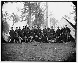 The infantry in the American Civil War comprised foot-soldiers who fought primarily with small arms, and carried the brunt of the fighting on battlefields across the United States. Historians have long debated whether the evolution of tactics between 1861 and 1865 marked a seminal point in the evolution of warfare.[1] The conventional narrative is that generals and other officers adhered stubbornly to the tactics of the Napoleonic Wars, in which armies employed linear formations and favored open fields over the usage of cover (whether constructed or natural in origin). Presumably, the greater accuracy and range of the rifle musket rendered that approach obsolete, and the Civil War armies' transition to longer battles in 1864 is taken by numerous scholars as proof of the new technology's transformative impact. More recently, however, academics have begun to reject this narrative. Earl J. Hess judges the tactical training of the Civil War as critical to the armies' success, and maintains that the dearth of overwhelming victories during the conflict was actually consistent with the infrequency of such battles throughout history.[2] Allen C. Guelzo contends that rifle muskets did not revolutionize land warfare due to a combination of inadequate firearms training and the poor visibility caused by black powder.[3] This debate has implications not only for the nature of the soldier's experience, but also for the broader question of the Civil War's relative modernity. Williamson Murray and Wayne Wei-Siang Hsieh argue that the conflict was resulted from "the combination...of the Industrial Revolution and French Revolution [which] allowed the opposing sides to mobilize immense numbers of soldiers while projecting military power over great distances."[4] The Civil War involved a number of other recently introduced and new technologies, including military balloons, repeating rifles, the telegraph, and railroads.