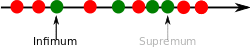 If the supremum of a subset exists, it is unique. If contains a greatest element, then that element is the supremum; otherwise, the supremum does not belong to (or does not exist). Likewise, if the infimum exists, it is unique. If contains a least element, then that element is the infimum; otherwise, the infimum does not belong to (or does not exist).