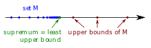 An upper bound of is called a supremum (or least upper bound, or join) of if