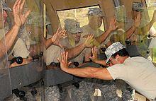 It is alleged by detainees that the units also act as a punishment squad for detainees whose level of insubordination does not fit the criteria for IRF deployment. Part of the allegations charge that regular guards will create reasons to call on the IRF to brutalize detainees over petty or non-existent infractions; refusing to agree to the third cell search in a day or infractions as slight as placing their toiletries on their shelf in the wrong order.[2][3][4] claims: "16. I have witnessed the activities of the Internal Reaction Force (hereinafter "IRF"), which consists of a squad of soldiers that enter a detainee's cell and brutalize him with the aid of an attack dog. The IRF invasions were so common that the term to be "IRF'd" became part of the language of the detainees. I have seen detainees suffer serious injuries as a result of being IRF'ed. I have seen detainees IRF'ed while they were praying, or for refusing medication."