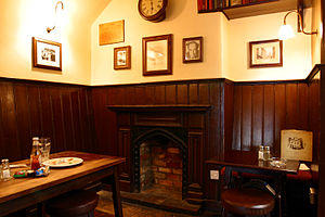 Until late 1949, Inklings readings and discussions usually occurred during Thursday evenings in C. S. Lewis's college rooms at Magdalen College. The Inklings and friends were also known to informally gather on Tuesdays at midday at a local public house, The Eagle and Child, familiarly and alliteratively known in the Oxford community as The Bird and Baby, or simply The Bird.[7] The publican, Charlie Blagrove, permitted Lewis and friends the use of his private parlour for privacy; the wall and door separating it from the public bar were removed in 1962. Later pub meetings were at The Lamb and Flag across the street, and in earlier years the Inklings also met irregularly in yet other pubs, but The Eagle and Child is the best known.[8]