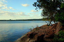 Inks Lake is a reservoir on the Colorado River in the Texas Hill Country in the United States. The reservoir was formed in 1938 by the construction of Inks Dam by the Lower Colorado River Authority. Located near Burnet, Texas, the lake serves to provide flood control in tandem with Lake Buchanan and features the smallest hydroelectric power plant on the Highland Lakes chain.[1][2] Inks Lake was named for Roy B. Inks, one of the original board members of the Lower Colorado River Authority, and serves as a venue for outdoor recreation, including fishing, boating, swimming, camping, and picnicking.[1]
