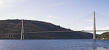 The first meeting of local commercial and political interests to establish a bridge across Skarnsund was held in 1972.[9] By 1983, it was formalized by the establishment of the company AS Skarnsundsbrua to finance construction.[10] The Parliament of Norway passed the plans in 1986,[11] and construction started two years later.[12] The bridge cost NOK 200 million,[13] and was opened by King Harald V on 19 December 1991, after he had taken the last ferry across the fjord.[9]