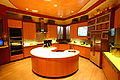 - A kitchen featuring a countertop voice-activated cookbook, an internet-connected bulletin board, and Siemens appliances, including the Liftmatic Oven