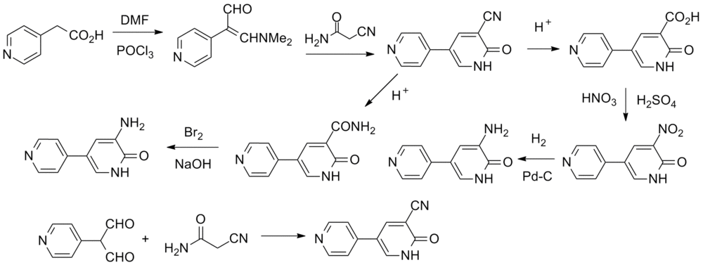 - ^ Alousi A.A.; Farah A.E.; Lesher G.Y.; Opalka C.J. (1979). "Cardiotonic Activity of Amrinone- Win 40680 [5-Amino-3, 4- bipyridin- 6(1H)-one]". Circulation. 45 (5): 666–677. doi:10.1161/01.RES.45.5.666. PMID 39684.