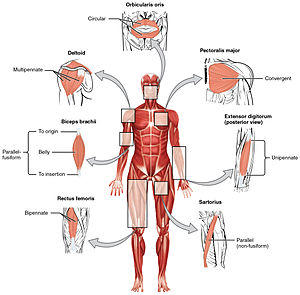 Skeletal striated muscle, or "voluntary muscle", primarily joins to bone with tendons. Skeletal muscle enables movement of the bones of the human skeleton and maintains posture.[1]