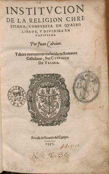 - Institucion de la religion Cristiana, 1597, translation by Cipriano de Valera