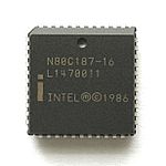 The 80187 (80C187)[7] is the math coprocessor for the Intel 80186 CPU. It is incapable of operating with the 80188, as the 80188 has an eight-bit data bus; the 80188 can only use the 8087. The 80187 did not appear at the same time as the 80186 and 80188, but was in fact launched after the 80287 and the 80387. Although the interface to the main processor is the same as that of the 8087, its core is that of the 80387 and is thus fully IEEE 754-compliant and capable of executing all the 80387's extra instructions.[8]