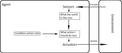 Simple reflex agents act only on the basis of the current percept, ignoring the rest of the percept history. The agent function is based on the condition-action rule: "if condition, then action".