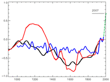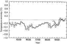 - Jones, P. D.; Briffa, K. R.; Barnett, T. P.; Tett, S. F. B. (1998), "High-resolution palaeoclimatic records for the last millennium: interpretation, integration and comparison with General Circulation Model control-run temperatures", The Holocene, 8 (4): 455–471, Bibcode:1998Holoc...8..455J, doi:10.1191/095968398667194956, S2CID 2227769