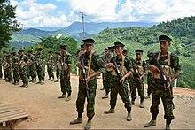 The initial aim of the largest Karen opposition group, the Karen National Union (KNU), and its armed wing, the Karen National Liberation Army (KNLA), was to obtain independence for the Karen people. However, since 1976 they have instead called for a federal union with fair Karen representation and the self-determination of the Karen people.[64] Nearly all of their demands and requests have been ignored or denied by successive governments, a contributing factor to several failed peace talks.