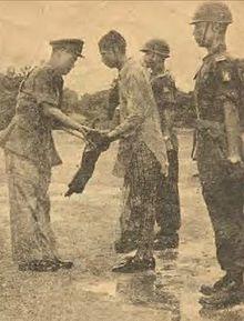 Following independence from the United Kingdom, the two largest opposition groups in Burma (Myanmar) were the communists, led by the Communist Party of Burma (CPB) and the Karen nationalists, led by the Karen National Union's predecessor. The former had fought the British colonial government prior to independence; however, during the final days of the Japanese occupation of Burma in World War II, both groups helped the British against the Imperial Japanese Army.[53] Initially there was calm during the transitional period after independence, but on 2 April 1948, the CPB fired the first shots of the conflict in Paukkongyi, Pegu Region (present-day Bago Region).[20]