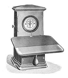 The Morse system for telegraphy, which was first used in about 1844, was designed to make indentations on a paper tape when electric currents were received. Morse's original telegraph receiver used a mechanical clockwork to move a paper tape. When an electrical current was received, an electromagnet engaged an armature that pushed a stylus onto the moving paper tape, making an indentation on the tape. When the current was interrupted, a spring retracted the stylus and that portion of the moving tape remained unmarked. Morse code was developed so that operators could translate the indentations marked on the paper tape into text messages. In his earliest code, Morse had planned to transmit only numerals and to use a codebook to look up each word according to the number which had been sent. However, the code was soon expanded by Alfred Vail in 1840 to include letters and special characters so it could be used more generally. Vail estimated the frequency of use of letters in the English language by counting the movable type he found in the type-cases of a local newspaper in Morristown, New Jersey.[17] The shorter marks were called "dots" and the longer ones "dashes", and the letters most commonly used were assigned the shorter sequences of dots and dashes. This code, first used in 1844, became known as Morse landline code or American Morse code.
