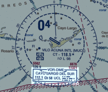 In aviation, pilots use radio navigation aids. To ensure that the stations the pilots are using are serviceable, the stations transmit a set of identification letters (usually a two-to-five-letter version of the station name) in Morse code. Station identification letters are shown on air navigation charts. For example, the VOR-DME based at Vilo Acuña Airport in Cayo Largo del Sur, Cuba is coded as "UCL", and UCL in Morse code is transmitted on its radio frequency. In some countries, during periods of maintenance, the facility may radiate a T-E-S-T code (▄▄▄▄▄▄▄▄▄▄▄▄▄▄▄▄▄▄▄▄▄) or the code may be removed which tells pilots and navigators that the station is unreliable. In Canada, the identification is removed entirely to signify the navigation aid is not to be used.[35][36] In the aviation service, Morse is typically sent at a very slow speed of about 5 words per minute. In the U.S., pilots do not actually have to know Morse to identify the transmitter because the dot/dash sequence is written out next to the transmitter's symbol on aeronautical charts. Some modern navigation receivers automatically translate the code into displayed letters.